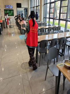 活动伊始,志愿者们早早来到学校四食堂、宝石花食堂和三食堂进行志愿服务。他们身着志愿服,手持清洁工具,积极参与到食堂卫生清理工作中。活动期间,志愿者们展现出了极高的热情和积极性。他们认真擦拭着每张餐桌和餐椅,细致地清理着地面上的每一处污渍,连卫生死角也不放过。尽管工作繁琐,但大家脸上始终洋溢着奉献的笑容,充分展现出了新时代青年学生积极向上、乐于助人的精神风貌。此外,为了确保食堂环境的整洁,志愿者们还精心对垃圾进行了分类处理。