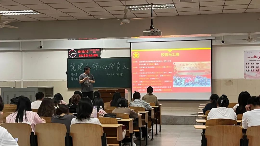 会议伊始,邹永东从青马班是什么、做什么、为什么和经验分享四个方面展开。从2006年开办至今,青马班已成功开办十六届,每年从全校优秀学生中遴选、培养100名左右的学员,至今,累计培养学员1600余名。零点起跑、事事争先;选择优秀、追求卓越;艰苦奋斗、报效祖国,从未来和当前两个方面延伸,邹永东提出了青马工程的培养目标,通过一年实践锻炼培养和一年跟踪培养,培养青年马克思主义者。接着,他详解了遴选条件和遴选流程,。随后,邹永东学长向同学们阐述了跟踪培养机制、“2+1”导师培养机制和“省、校、院”三级培养机制,让同学们充分了解到青马工程的卓越性、专业性和先进性。对于培养内容,邹永东学长详细地通过“有理想”“有本领”“有担当”三个维度进行讲解,并举图片实例向同学们介绍“三早”等活动,一张张风采展,一幕幕小组照,展现了青马的魅力,促使同学们不断进步,追求卓越。聚是一团火,散是满天星。邹永东进一步展现了青马学员的个人成长,学习先进典型,凝聚奋进力量,优秀典型不断激励着同学们,给予同学们前进的动力。