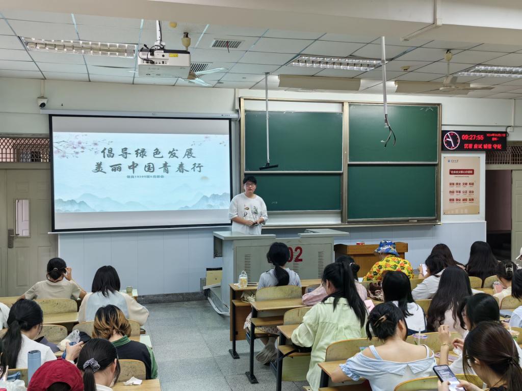 团会活动的第一项,学习习近平总书记关于社会主义生态文明建设的重要论述。习近平生态文明思想是习近平新时代中国特色社会主义思想的重要组成部分,为新时代推进生态文明建设提供了方向指引和思想武器,扎实开展主题学习、广泛进行生态文明宣讲、精心开展主题实践活动,引领广大青年在推动绿色发展、建设美丽中国的伟大事业中贡献青春力量。