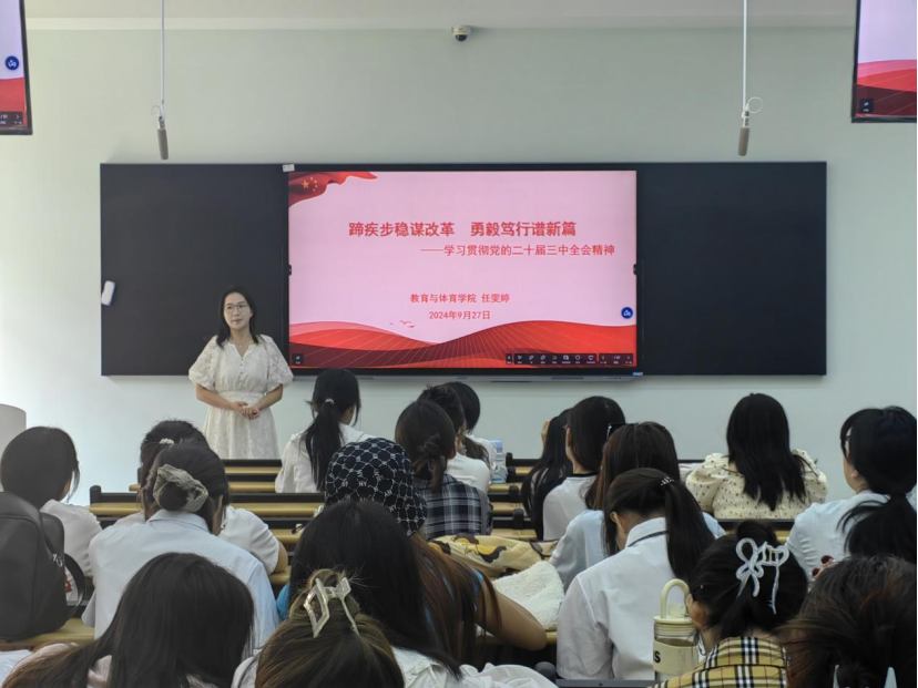 团会活动第一项,学习贯彻党的二十届三中全会精神。学院团委书记任雯婷老师,在学前12201班开展关于党的二十届三中全会主题宣讲活动,引领团员青年深切领会、精准把握党的二十届三中全会的精神。其他各团支部结合相关资料,通过线下集中学习、团干部领读党报等形式,牢记习近平总书记的嘱托,坚定理想信念,铸牢精神之基,厚植爱国情怀,矢志不渝跟党走,助力强国建设和民族复兴伟业。