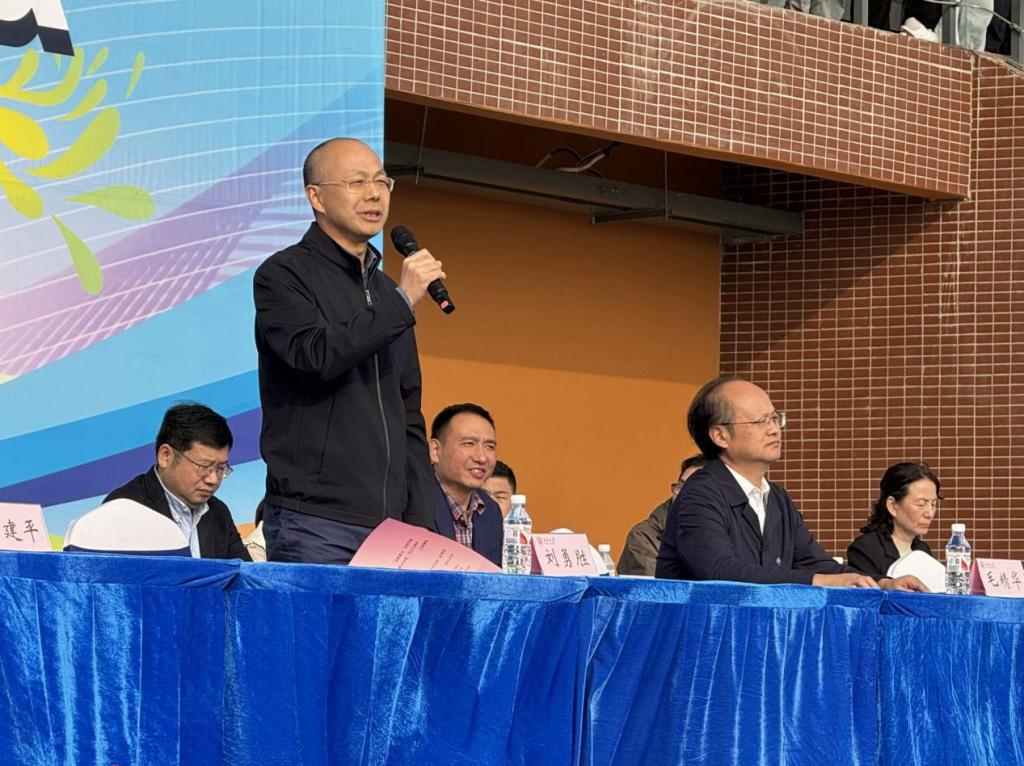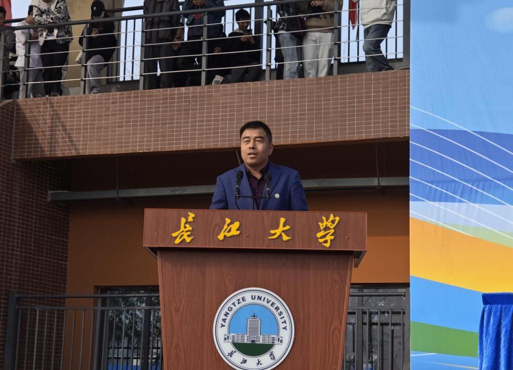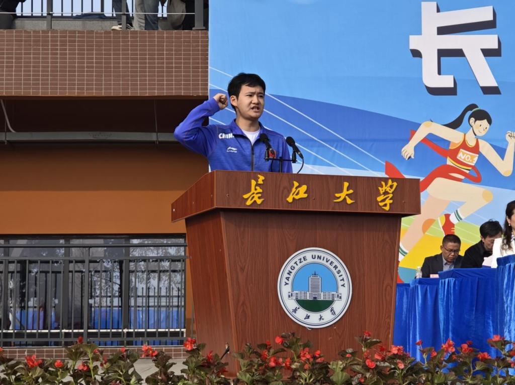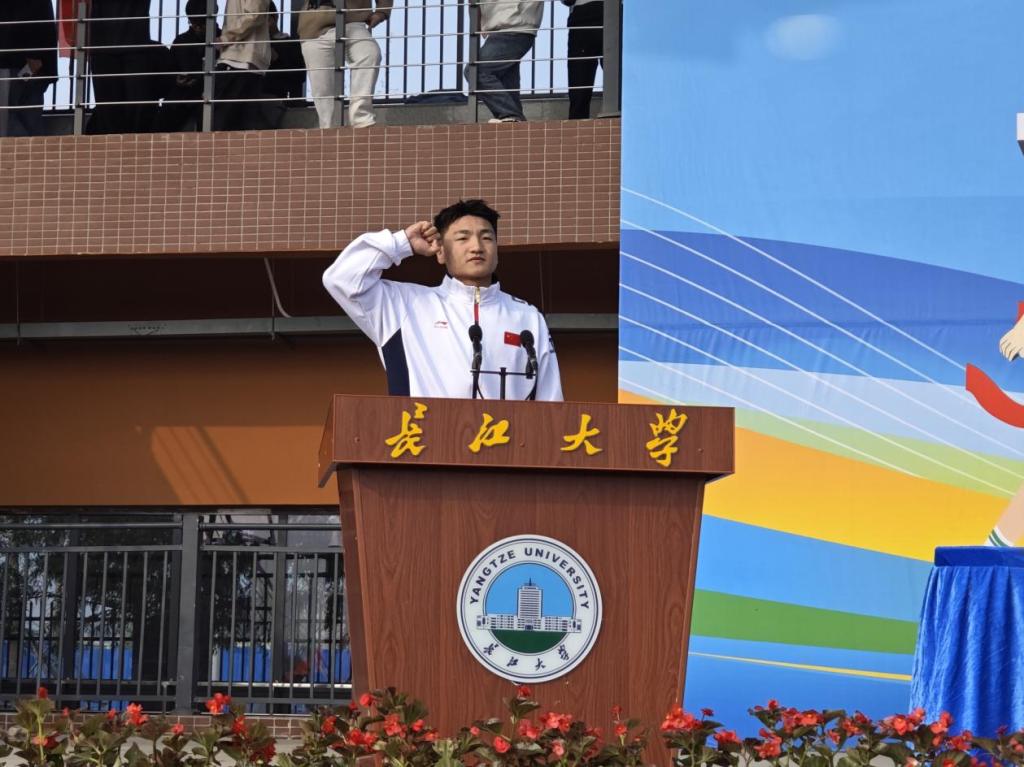 在国歌声中,全体肃立,五星红旗缓缓升起。随后,副校长许锋致辞。他回顾我校运动健儿们在各项赛事中取得的辉煌成绩,鼓励运动员们赛出青春活力,赛出长大风采,将求实、进取、创业、报国的长大精神融入体育运动中。许校长表示,LETOU国际米兰官网一直坚持贯彻健康第一的教育理念,在今年,对体育馆及运动设备进行维护改造和升级,推动全校迎来环境一流的运动环境,鼓励同学们在运动中增强体质、磨砺意志、锤炼品格,最后,他希望全体运动员以饱满的激情和昂扬的斗志赛出成绩,赛出风格,全体工作人员秉承公平公正原则,维护运动会的稳定进行。
