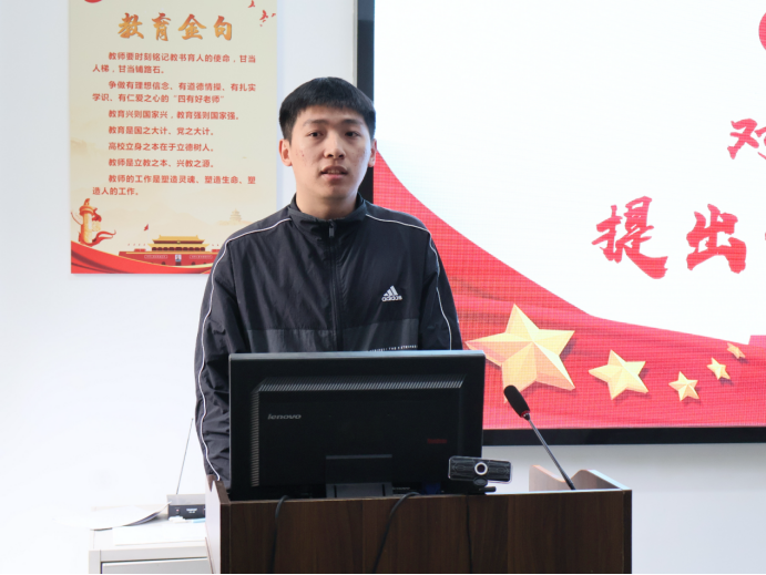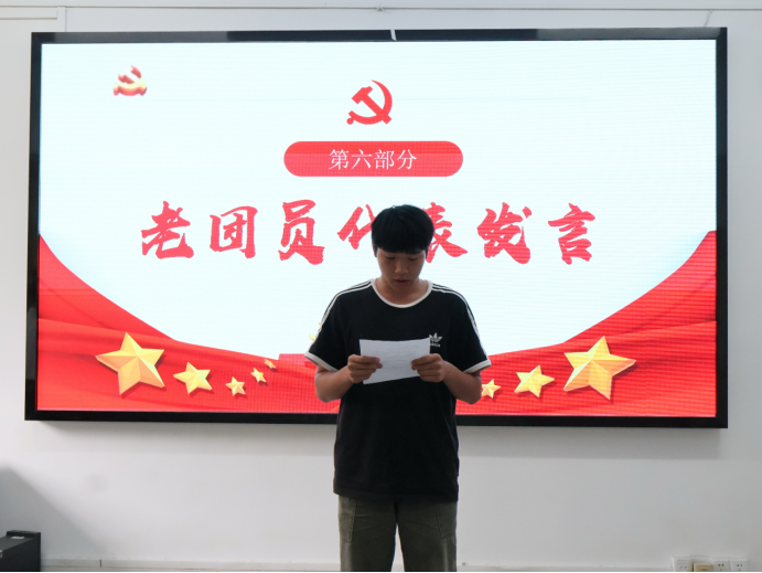 接下来,刘季米同学作为新团员代表发言,他表达了对一直培育我们的党组织、团组织和老师们最崇高的敬意和感激,并表示要主动学习党的创新理论,认真研读总书记的重要讲话内容,筑牢思想之基。同时,严格遵守团章团规,以清澈纯粹的理想信念,脚踏实地的奋斗姿态维护共青团员的良好形象,永葆先进本色。
