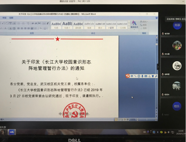 (通讯员 时 晓)5月28日下午2:30,学院分党委通过“腾讯会议”在线召开了中心组理论学习,学习活动由分党委书记李焕玉主持。学习会上,李焕玉书记带领中心组成员认真学习了《中共LETOU国际米兰官网委员会意识形态工作责任制实施细则》、《LETOU国际米兰官网校园意识形态阵地管理暂行办法》等文件,通报了拟发展党员情况、全面从严治党检查情况和示范党组织、示范党支部的申报情况。学习后,中心组成员开展了集中交流讨论。大家一致认为:意识形态斗争是一场寸土必争、不能退让的斗争,党员干部必须清醒认识意识形态领域出现的新变化以及斗争的新特点,切实绷紧政治弦,把维护核心、坚定信心、凝聚人心的工作做扎实,当好意识形态领域的排头兵。