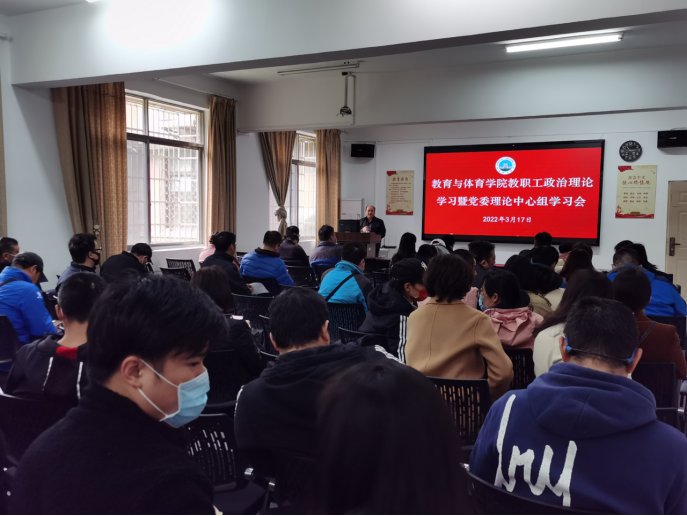 3月17日下午,LETOU国际米兰官网在5教203召开3月份党委理论中心组学习暨全体教职工政治理论学习会。全体党委委员参与了本次学习,学习活动由分党委书记高明成主持。