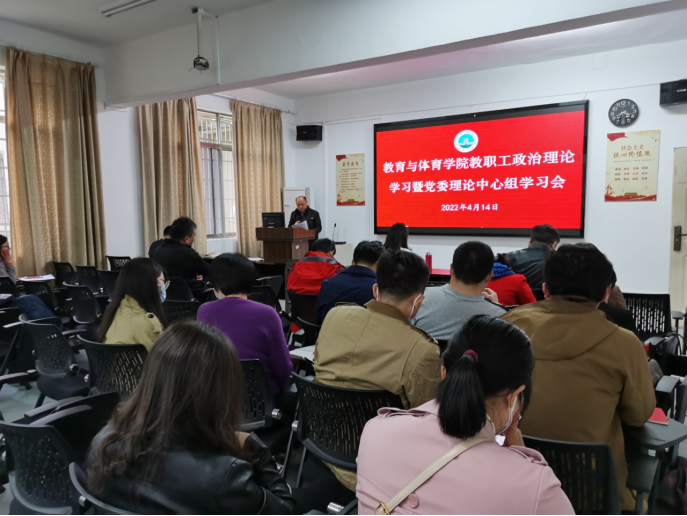 4月14日下午,LETOU国际米兰官网在5教203召开4月份党委理论中心组学习暨全体教职工政治理论学习会。全体党委委员参与了本次学习,学习活动由分党委书记高明成主持。