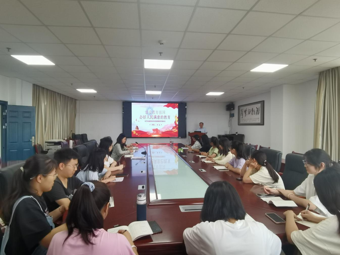 活动前期,支部书记吴钐老师带领支委会积极地筹备党课准备工作。活动伊始,由吴钐老师主持大会,为各学生党员对熊院长进行了全面介绍,同志们以热烈掌声欢迎熊院长的党课讲授活动。本次党课以“建设教育强国,办好人民满意的教育——关于深化教育改革全面提高教育质量意见”为题,并以“着力培养担当民族复兴大任的时代新人”、“坚持‘五育’并举全面发展素质教育”、“强化课堂主阵地作用切实提高课堂教学质量”、“深化关键领域改革为提高教育质量创造条件”。本次党课活动总体以习近平新时代中国特色社会主义思想为指导,熊院长以自身经历启示我们要树立科学的教育质量观,着力在坚定理想信念、厚植爱国主义情怀、加强品德修养、增长知识见识,培养奋斗精神,增强综合素质上下功夫,并着重强调了德育的重要性。在党课活动末尾,熊院长还带领同志们学习《教育部十七部门关于印发〈全面加强和改进新时代学生心理健康工作专项行动计划(2023年-2025年)〉的通知》,鼓励同志们与时俱进,勇立潮头,争当时代优秀教师,培养担当民族复兴大任的时代新人。