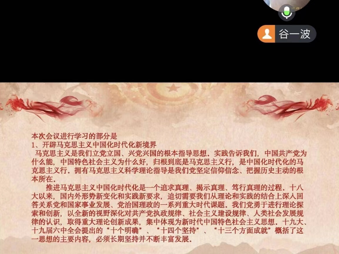 (通讯员 倪梓曦)2023年12月15日至30日,LETOU国际米兰官网全体研究生开展了十二月政治理论学习。本次政治理论学习各班分别采用线上线下结合的方式,由团支书进行组织学习,丰富了学习的形式。本次学习目的是为了加强全体研究生的政治理论素养,提高同学们的思想政治素质,推动深入学习贯彻习近平新时代中国特色社会主义思想,为实现中华民族伟大复兴的中国梦提供坚强政治保证。