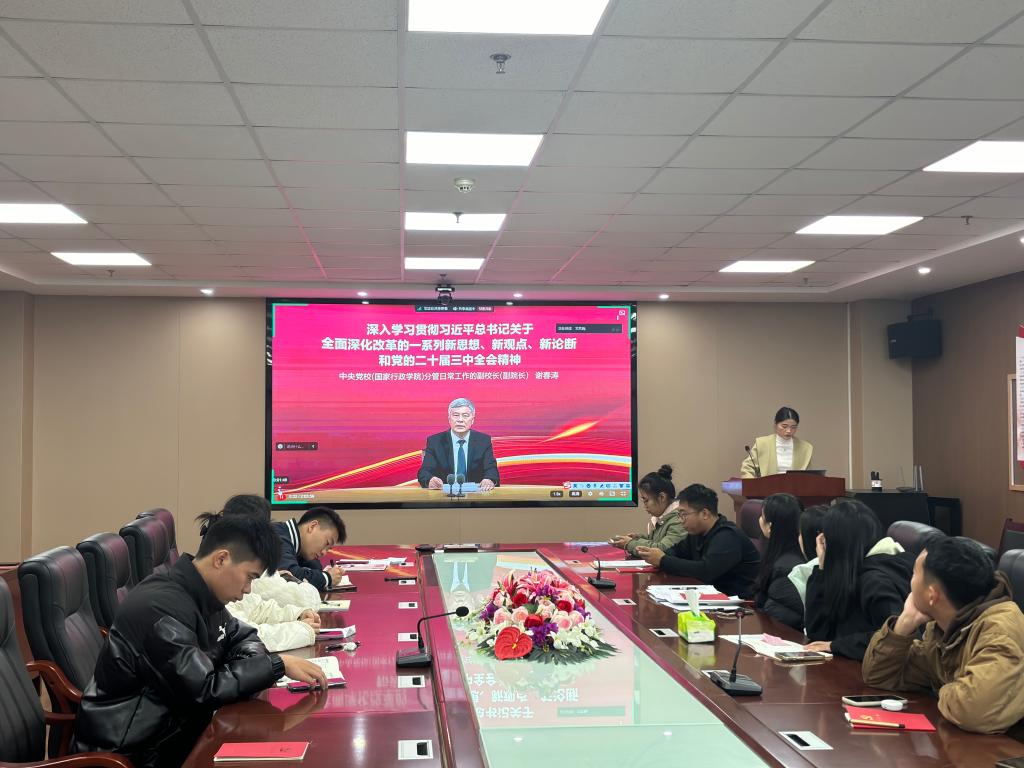 全体党员集中学习了《深入学习贯彻习近平总书记关于全面深化改革的一系列新思想、新观点、新论断和党的二十届三中全会精神》专题网课。本次网课由中央党校(国家行政学院)分管日常工作的副校长(副院长)谢春涛教授主讲。谢春涛教授主要从党的二十届二中全会取得的重要成就、党的二十届三中全会的主题:全面深化改革,推进中国式现代化、改革的重要性和必要性、关于全面深化改革的新思想新观点、进入全面深化改革的重大原则和进一步全面深化改革的重大举措这六方面出发对党的二十届三中全会进行了深入的解读,为我们理解把握党的二十届三中全会精神的核心要义和实践要求指引了方向。
