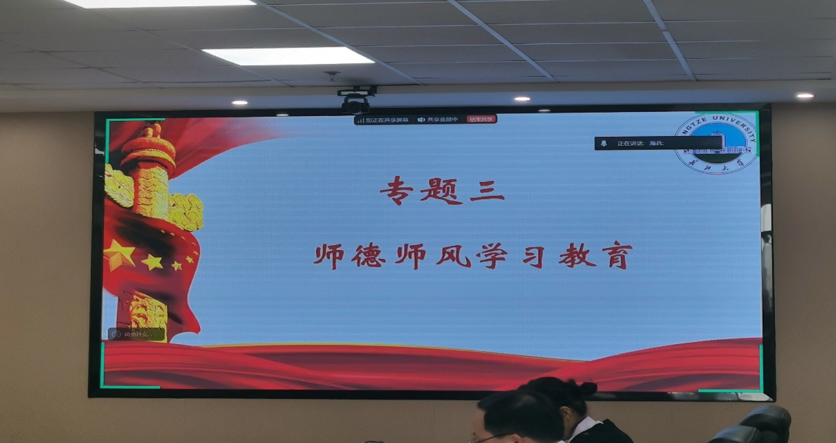 紧接着,于永伟书记围绕师德师风建设展开深入讲解。他首先针对近期高校师德失范典型案例为切入点,深入剖析案例中违反教师职业行为规范的具体表现,通过“以案说纪、以案示警”,强调师德是教育之魂、立身之本,要求全体教师要明确职业行为底线与育人使命担当,筑牢思想防线。接着,于书记结合教育教学实际,对《新时代高校教师职业行为十项准则》与《关于加强和改进新时代师德师风建设的意见》的核心要义进行详细解读,强调其作为教师行为规范的指导性意义,他指出,全体教师要深刻认识到师德师风建设的重要性,自觉遵守教师职业道德规范,做到以德立身、以德施教,以高度的责任感和使命感,主动践行“为党育人、为国育才”的初心使命。同时以签订师德师风公开承诺书为契机,共同筑牢师德防线。