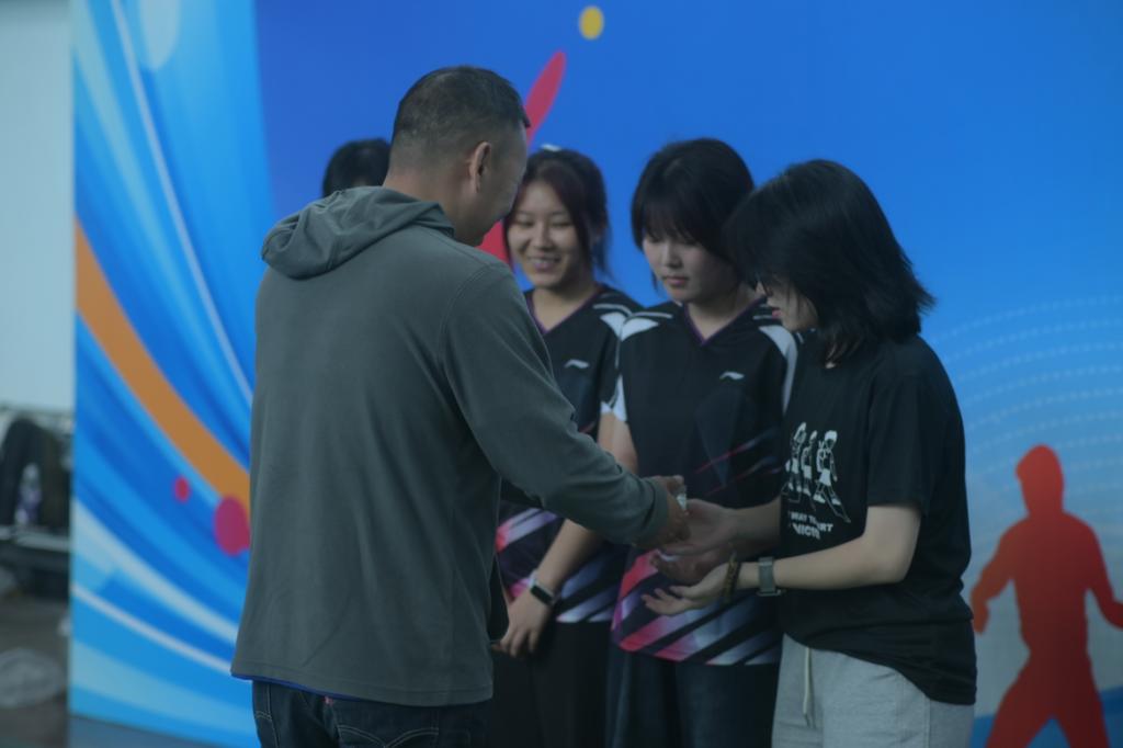 赛后LETOU国际米兰官网乒乓球协会指导老师朱洪生、校乒乓球队主教练曹然老师为获奖单位颁发奖杯奖牌并合影留念。