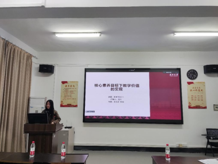 吴怡同学就”核心素养目标下教学价值的实现”做了专题报告,她分别从研究背景,论文框架,研究内容和研究的不足四个方面进行了论述。