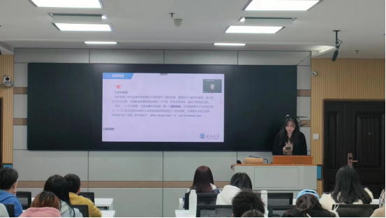 包可菲同学以“发达国家小学课后服务实践与启示——以美、英、澳、韩为例”为题进行汇报。她写明了我国在小学课后服务阶段的不足,如支出少,地方差异大,奖励机制缺乏等,并提出了三点半难题,值得我们思考。