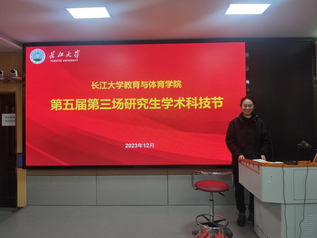 本次活动2022级体育教育训练学的陈舒鹏、王明芳、荣雨檐、刘国勇四位主讲同学依次就其研究成果进行了学术汇报。