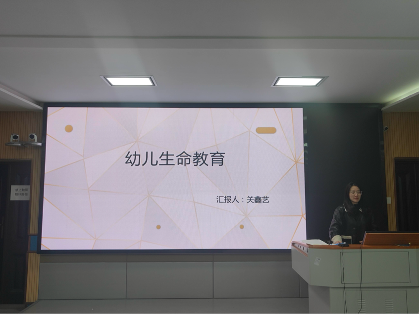 关鑫艺针对幼儿生命教育做了综述,她介绍道,生命教育是引导人们认识生命、尊重生命、爱护生命的教育,幼儿期处在生命的起点,也是生命奠基的重要时期。科学有效的生命教育帮助幼儿在未来的成长发展中认识生命、关怀生命、欣赏生命、感恩生命、润泽生命。