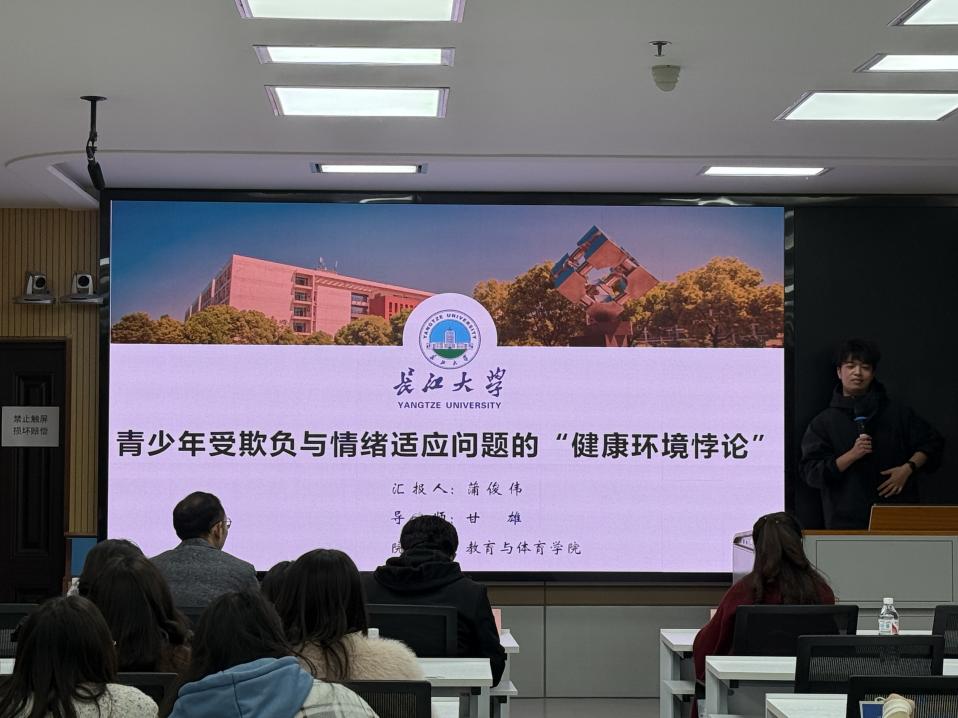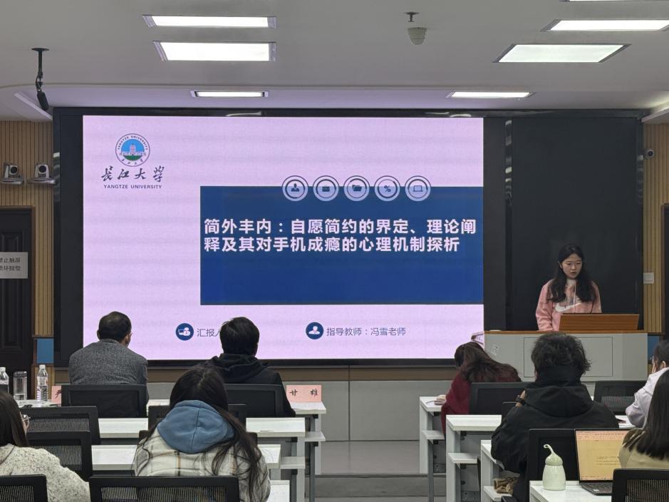 本次活动的五位主讲,即2023级教育学原理专业心理学方向的蒲俊伟、刘嘉玲、杨宇蓉、张艳君、秦可依次就其研究作了汇报。