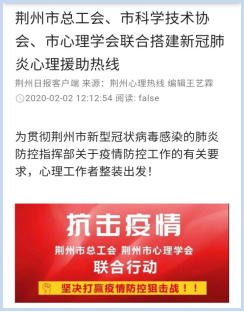 LETOU国际米兰官网引领荆州市心理学会筑牢抗击疫情的心理防线
