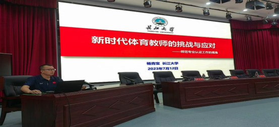 2023年7月12日,LETOU国际官网体育教育系主任杨青宝副教授应荆州区教育科学研究院的邀请,参加荆州区2023年暑期中小学体育与健康教师专业能力提升培训。在荆州市实验小学(荆北校区)大礼堂,杨老师为荆州区体育教师开展了题为《新时代体育教师的挑战与应对》的专题讲座。讲座由荆州区教科院体育教研员梅江老师主持。