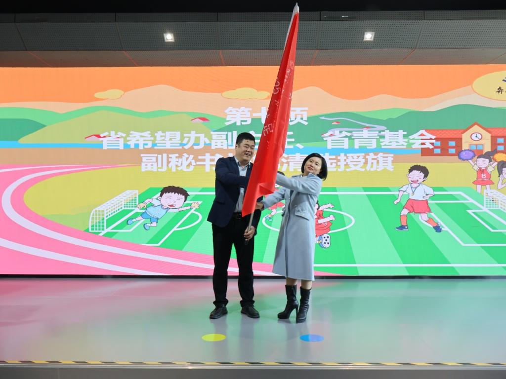 “请接旗!愿你们不负重托,载誉而归!”在庄严的乐曲声中,省希望办邹清选副主任将“2025姚基金·美丽乡村足球季”的旗帜交于于永伟书记手中,鲜红的旗帜飘扬,学院接起的是责任也是荣耀。
