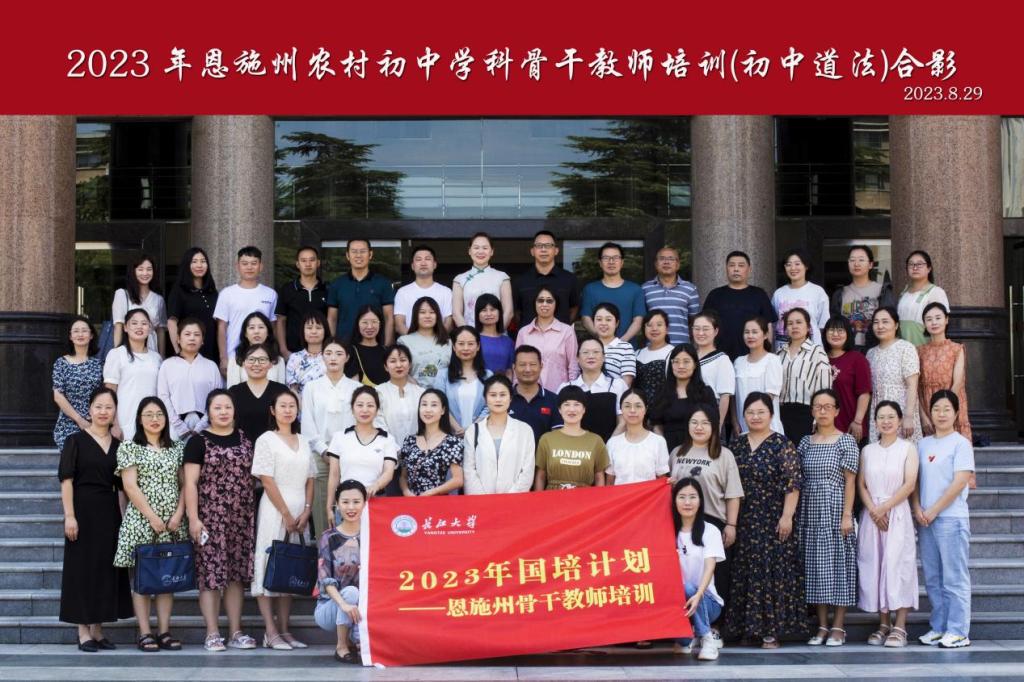 按照湖北省教育厅的统一部署,LETOU国际官网承办的2023年国培计划恩施州农村初中道德与法治骨干学科教师培训经过前期周密的准备与安排,于2023年8月24日正式开班,本期培训班迎来了湖北省恩施州8个市县的50名农村初中道德与法治骨干教师,培训分集中研修、跟岗实践、提高总结三阶段进行。