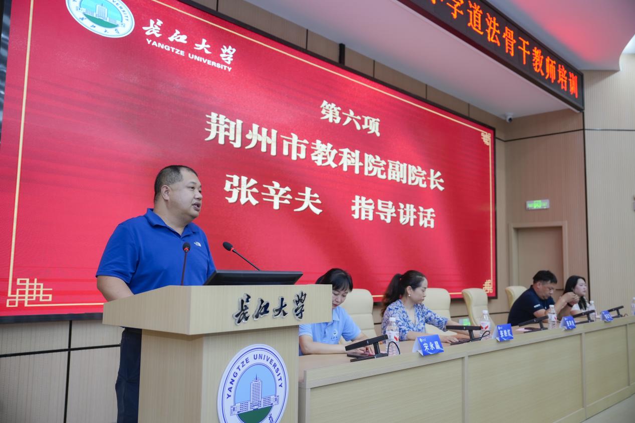 荆州市教科院副院长张辛夫在指导讲话中围绕三个维度提出要求:一是“提高站位,深化认识”,深刻领会道德与法治教育在青少年价值观塑造中的核心作用;二是“学思践悟,知行合一”,将培训所学内化于心、外化于行,融入日常教学;三是“严守纪律,示范引领”,以身作则,树立新时代教师的良好形象。他的讲话为全体学员明确了学习方向与目标。