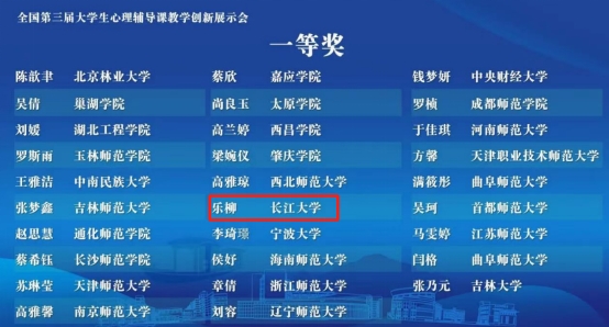 据悉,本届全国大学生心理辅导课教学创新展示会由教育部高等学校心理学类专业教学指导委员会、中国心理学会主办,浙江师范大学、华东师范大学、桐乡市教育局承办。比赛分初赛和决赛两个阶段,共有156所院校的288个作品参加初赛,其中99所院校的144名选手入围决赛。决赛分现场说课和现场授课两个阶段进行,乐柳以扎实的理论基础、过硬的专业技能和良好的精神风貌,在激烈的竞争中脱颖而出,荣获一等奖。